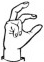 На ћирилици написано РУМЕНА БАЛЗАМОВИЋ састоји се из 16 слова [?]. Исписано ћириличном једноручном азбуком за глувонеме: